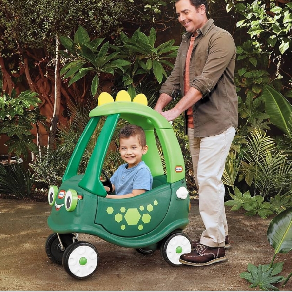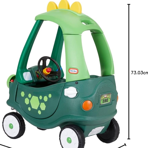 The Cozy Coupe with its dinosaur spikes and decals inspires kids to engage in imaginative play while they roll around. Kids will love that the Dinosaur Cozy Coupe is easy to maneuver with the 360 degree spinning front wheels and tires for both indoor and outdoor play. Kids will love pretending to be park rangers in the all-new Dinosaur Cozy Coupe by Little Tikes!