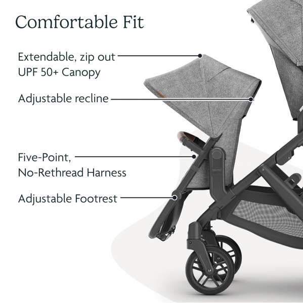 Directly attach this second seat to your Vista to easily accommodate two in tow. The RumbleSeat V3 can be used both forward- and parent-facing. Suitable for children from 3 months to 40 lbs or 36", whichever comes first.