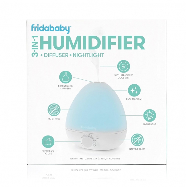 DIFFUSER: Add Breath Frida Vapor Drops or any aromatherapy-grade essential oil for easier breathing - it covers up to 320 square feet with a 0.5 gallon tank.COLOR CHANGING NIGHTLIGHT: Equipped with a range of nightlight colors for even more control over the dreamy ambiance.AUTO-STOP FEATURE: Designed to automatically turn off when the water runs out or the tank is removed.