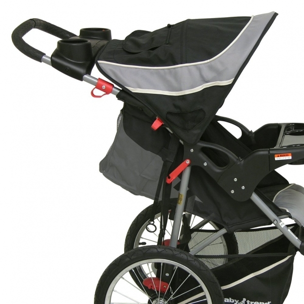 The expedition jogging stroller features large bicycle tires and a front swivel wheel that can be unlocked for low speed maneuvering or locked into place for jogging. Stroller also can accept any of the baby trend flex-lock or inertia infant car seats to make a travel system, comes with both a parent tray with 2 cup holders and a storage compartment and child tray with cup holder. The multi-position reclining padded seat, has a fully adjustable 5 point safety harness and tether strap, and fully adjustable ratcheting canopy to block the sun and wind. The stroller folds effortlessly with a trigger release into a compact fold for easy storage or transport, and the extra wide ergonomically shaped rubber handle is both soft for pushing and cushy when transporting. Footrest reflectors provide greater low-light visibility, comes with an extra-large storage basket, lightweight rugged steel frame construction and JPMA certified.