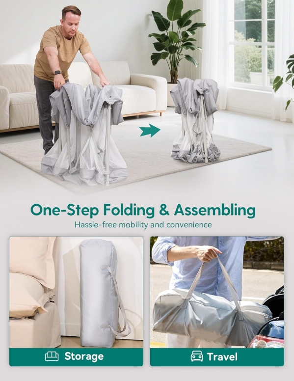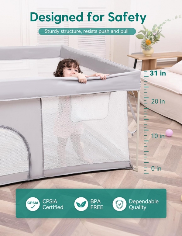 Rent Baby Gear INCLUDING Foldable Baby Playpen with Mat, 54.5" × 54.5" Portable Playard for Babies and Toddlers, No Assembly Required, Indoor & Outdoor Kids Safety Play Pen Area, Travel Fence, Grey Grey with Mat 54.5*54.5*31 | BabyQuip