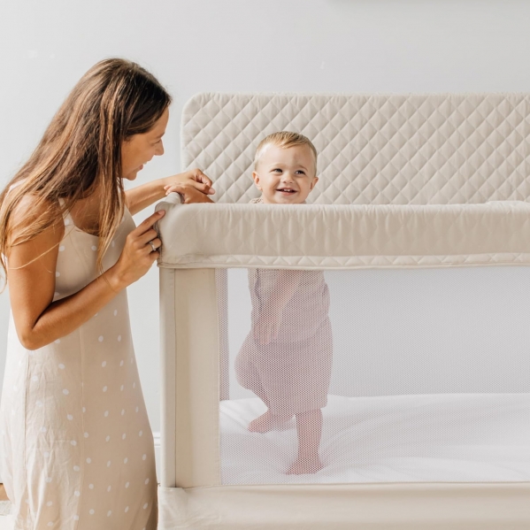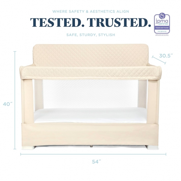 Create a tranquil retreat for your little one with this ‘first of its kind’ Lunaire Organic full-size crib and playard. This crib sets up quickly without tools and is crafted from luxe GOTs certified organic cotton quilted fabric and breathable synthetic mesh. Whether in your home or anywhere you go, this versatile piece is designed to complement any style while ensuring a safe and comfortable sleep environment. Its elegant design not only enhances your nursery but also provides a serene space for your baby to rest safely and peacefully.