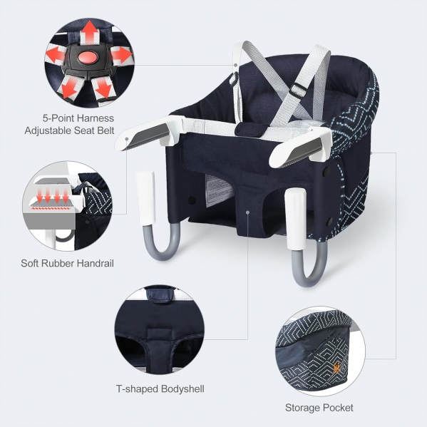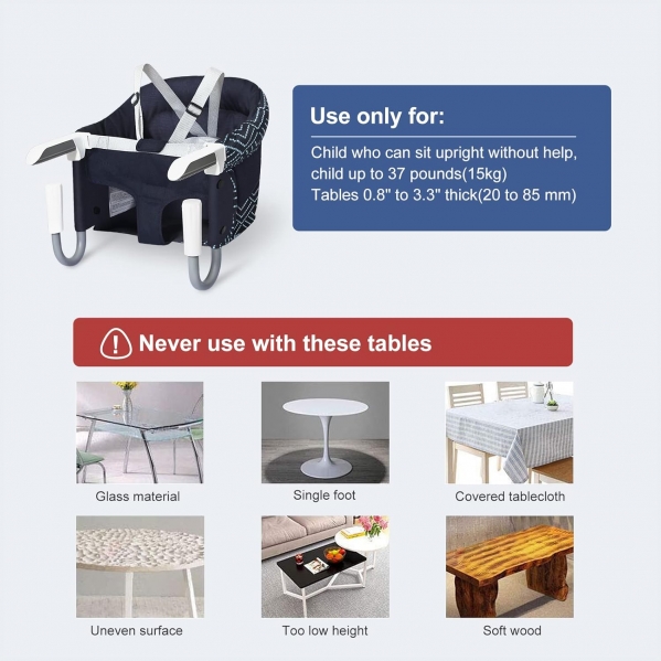 [Booster Chair with 5-point harness] The High Chair That Attaches To Table has an adjustable 5-point harness that can buckle baby to stay in the table high chair and ensure the baby's safety. This seat belt can also be used as a 3-point seat belt if you want.