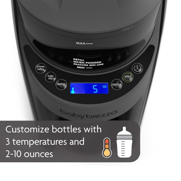 Baby Brezza Formula Pro Advanced is the most advanced way to automatically make a warm, formula bottle in seconds. No measuring, no mixing and no fuss. Now available in fashionable Charcoal color. You can customize the perfect bottle for your baby by dispensing 2-10 ounces in 1 oz increments, choosing 1 of 3 temperature settings or dispensing water only. It works with virtually all brands of formula and all bottle brands and sizes. This revolutionary machine is more accurate, consistent, hygienic & faster than hand scooping.