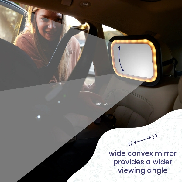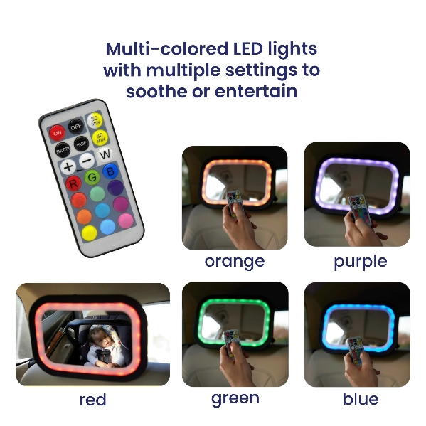 It's a backseat party. This remote-controlled lighted glow mirror turns any ride into a joyride. Built with crash-tested, shatter resistant safety features, you'll love the view as much as your baby does.