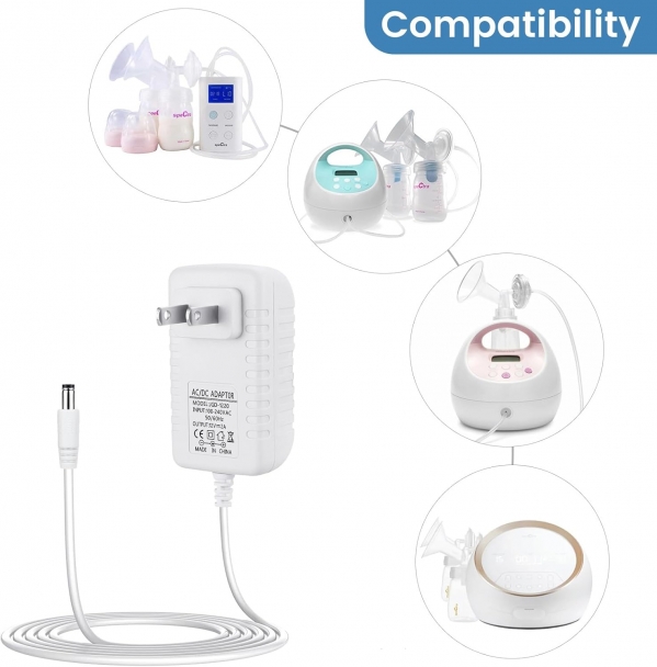 Rent Baby Gear INCLUDING 12V Charger Replacement for Spectra Breast Pump S1, S2 Plus, S3 Pro, 9 Plus, 6ft Charging Power Cord White | BabyQuip