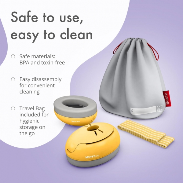 PROTECT YOUR BABY FROM NOISE | Loud sounds can be quite harmful for babies, and every 8th child suffers from permanent hearing loss! Alpine Muffy Baby limits your infant’s exposure to loud noise during the early years. Whether it impairs sleep or potentially damages the hearing at busy events, ear protection for babies and toddlers is essential.
