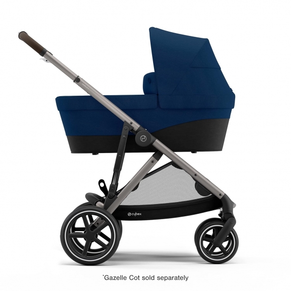 The CYBEX Gazelle S Stroller grows with your family, offering endless opportunities to attach different combinations of seat units, Gazelle S Cots or CYBEX infant car seats. Featuring a complementary, detachable shopping basket and a massive stroller basket with a combined 50 lb. capacity, the Gazelle S is the ideal companion whether you’re shopping the local market or the city center. Designed to grow with your family, your Gazelle S Stroller comes with a seat unit that accommodates infants 6 months and older. It is fully compatible with all CYBEX car seats and the Gazelle S Cot. The stroller’s ergonomic near-flat position allows for naps on the go and the front-facing ride position lets your little one explore along with you. The Gazelle S can be converted to a double stroller by adding additional CYBEX infant or toddler seats or Gazelle S Cots with CYBEX adaptors. Add CYBEX stroller accessories like snack trays, cup holders, or Kid Boards for older children to fully customize your ride. Our stroller’s four-wheel design allows for easy maneuverability around town. With over 20 different configurations, your Gazelle S can keep everyone and everything riding in style and comfort, no matter how long the trip.