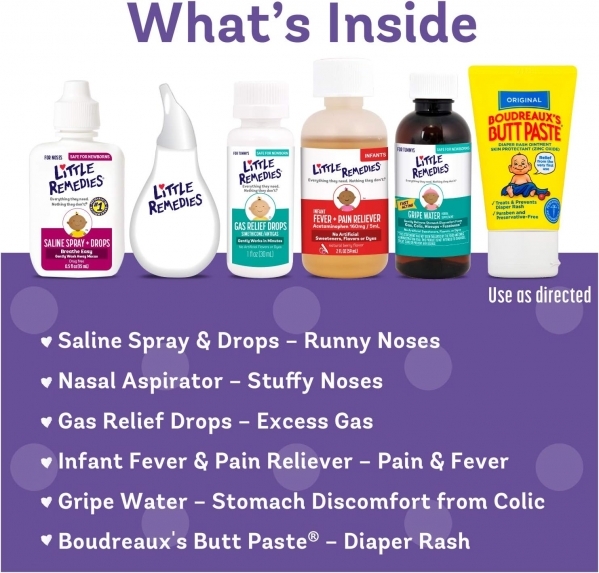 Be prepared for everything! This Little Remedies kit has everything you need to safely and effectively relieve the most common symptoms that may arise. The Little Remedies New Baby Essentials Kit contains: