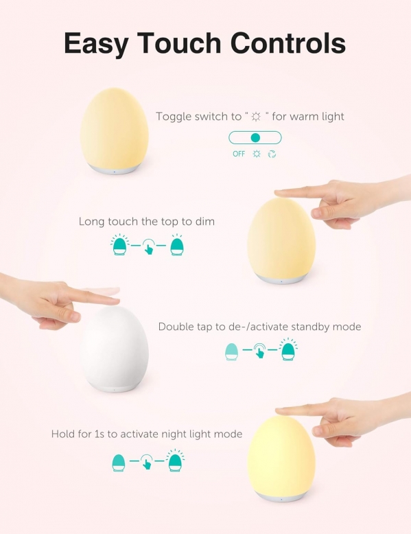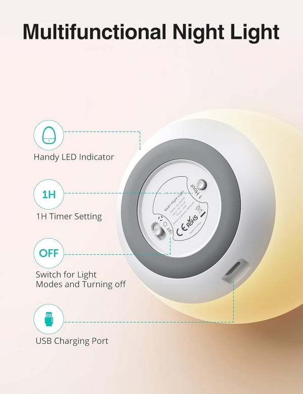 Night Light with Color Changing Mode & Dimming Function, Touch Control, 1-hour Timer, Rechargeable