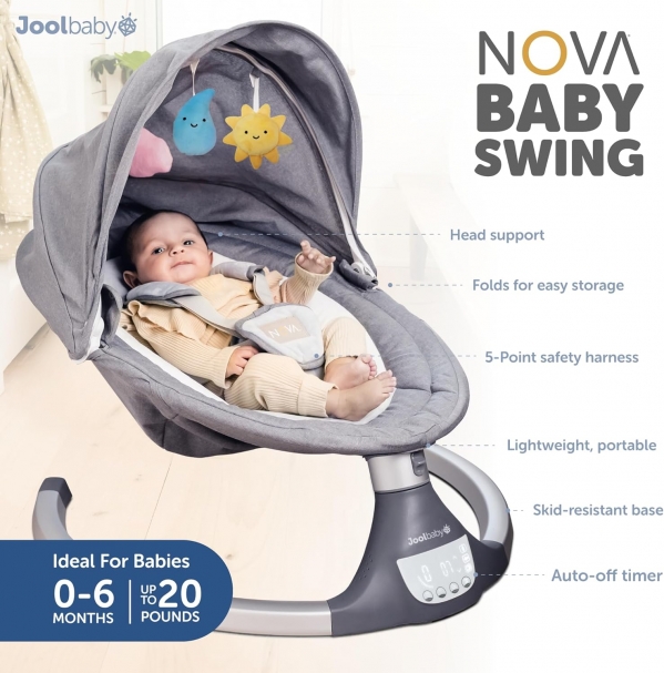 Jool Baby Nova Swing is lightweight and portable at just 7.25 pounds. It features: