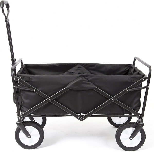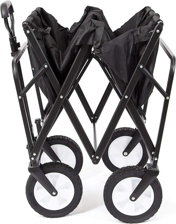 Color:BlackEasily haul your gear with the MAC Sports Folding Utility Wagon. It opens in SECONDS! The lightweight durable design has a 150 lb. capacity and is a must have to transport heavy bulky loads. Great for trips to the park, camping, outdoor sporting events, gardening and much more! The accordion style floor makes set up and break down a breeze. It folds easily into its own carry bag for compact storage. MAC Sports is a trusted brand since 1993!