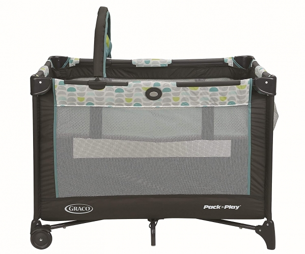 PRODUCT DESCRIPTION Style:W/ Bassinet Insert| Color:StratusPRODUCT DESCRIPTION You want your little one to be comfortable no matter where you go and Graco wants to make that easier for you. With the Graco Pack 'n Play Playard On The Go, in Stratus, you have a removable full size bassinet that provides the perfect spot for baby to catch a nap, as well as automatic folding feet and wheels which make it perfect for travel. The signature Graco push-button fold allows you to break the baby play yard down quickly and with no hassle. At home or away, baby will be kept comfy and cozy. Care and Maintenance: Clean with household soap and warm water/drip dry. No bleach. Machine wash carry bag in lukewarm water/drip dry. If Playard gets sandy, carefully remove sand from all surfaces before packing into bag as sand can damage top rail lock. Recommended Use: For use by children unable to climb out, less than 35" tall. Bassinet for babies under 15 lbs and unable to push up on hands and knees. FALL HAZARD: To help prevent falls, do not use this product when the infant begins to push up on hands and knees or weighs over 15 lbs(6.8 kilogram), whichever comes first. The folded height is 29 inches and the folded width is 10.5 inches. BRAND STORY By Graco