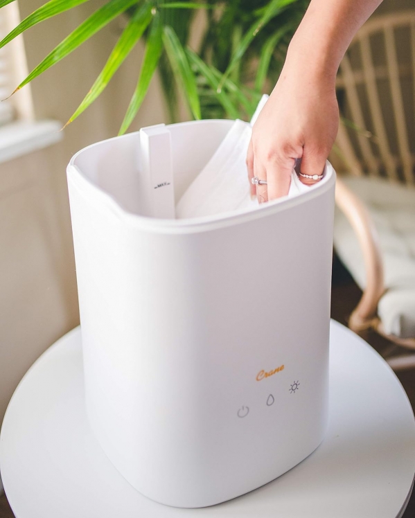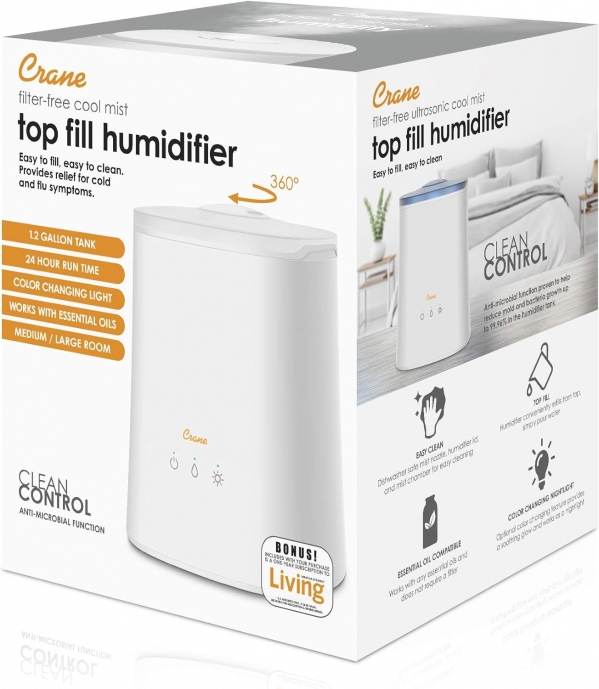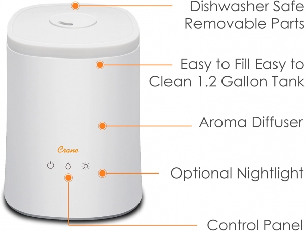 Crane Cool Mist Humidifier, Filter Free, Top Fill, 1.2 gallon With Optional Color Changing Light & Aroma Diffuser Function. Works With Essential Oils