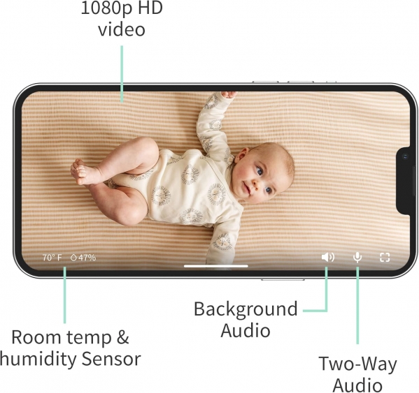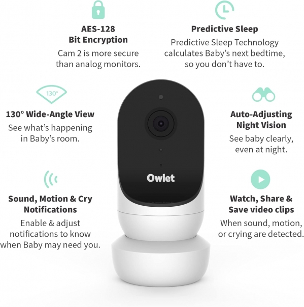 Rent Baby Gear INCLUDING Owlet Cam 2 - Smart Baby Monitor Camera - Stream Secure HD Video and Audio with Night Vision, 4X Zoom, Wide Angle View and Sound, Motion and Cry Notifications White | BabyQuip