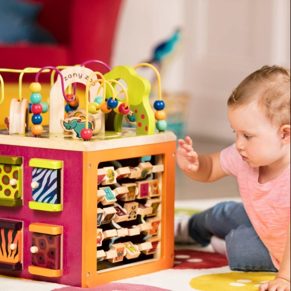 Entertain and engage your little one with this activity cube rental. Packed with fun, developmentally enriching features—perfect for playtime during family travel.