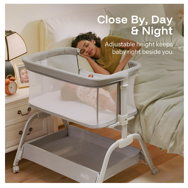 HARPPA Baby Bassinet is designed for infants from 0 to 5 months, combining the functions of a baby bassinet and a bedside sleeper bassinet to meet your baby’s evolving needs. The durable fabric and 360° breathable mesh design help promote airflow and ensure a comfortable sleep environment for your baby. A sturdy support structure provides added stability and safety.