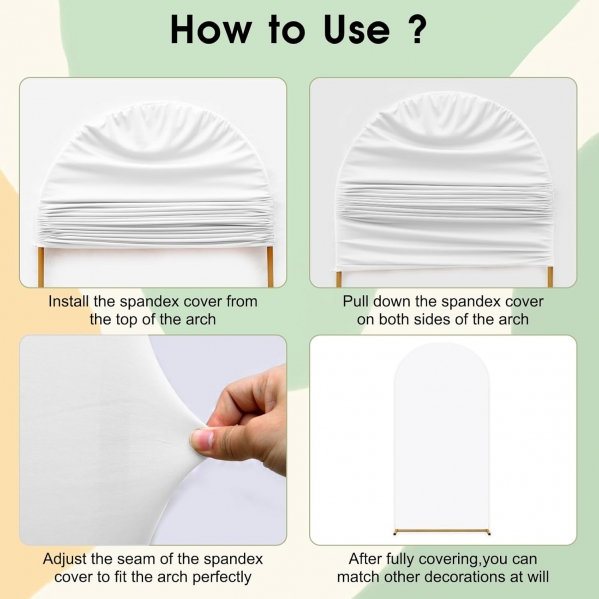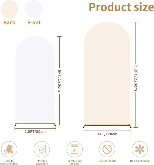 Arch Backdrop Cover Set of 2(6ft/7.2ft) Double Color Wedding Arch Cover Spandex Fitted Arch Covers,Round Top Arch Backdrop Cover for Baby Party Birthday Banquet Shower (White+Cream)