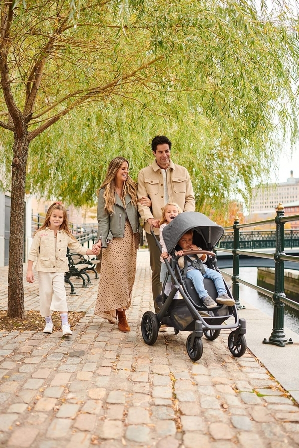 STROLL IN STYLE + GREENGUARD GOLD CERTIFIED: Supporting healthier air quality & low chemical emissions. Luxurious fabrics & REACH certified full-grain leather details; adjustable, telescoping handlebar which extends for parents of varying heights.