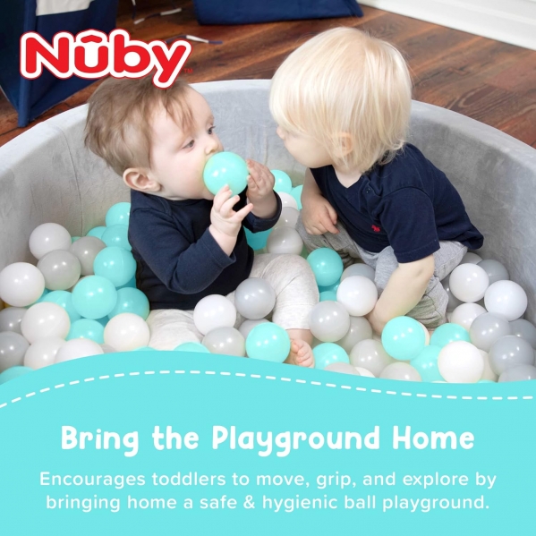 At Nuby, we believe fun should also be filled with learning. That’s why our toys are designed with engaging characters, captivating shapes, and textures. Designed to stimulate the mind while giving your little one a new best friend. Nuby's soft play foam ball pit is a great way to have fun without leaving the house! An absolute hit with the kids. Comprised of 200 colorful lightweight balls for toddlers that help develop hand-eye coordination (sensory ball pit) your little one will enjoy hours of fun in their ball pit! Nuby's Ball Pit makes having fun at home a ball! It’s a baby and kid magnet. This ball pit kiddie memory foam is so useful and secure to use. We strive toward making the lives of parents and children easy, simple and fun. The highest quality standards, global trends, and continual product development help us bring parents everything they need for their baby's development