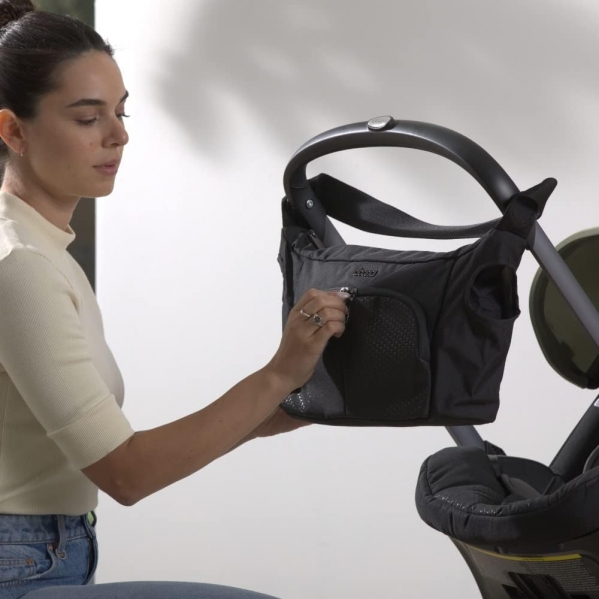 Store your extra stuff! Carry all your essentials in style with the Essential Bag from Doona. It fits perfectly on the handles of your Doona and maintains its stability when in use for walks, doctor's appointments, and more. This bag features unique quick-release Doona connectors, making the process of attaching and removing the storage bag quick and easy, no matter the occasion. Its compact, lightweight and elegant design make this diaper essentials bag the perfect companion for your Doona Car seat. Featuring smart and practical compartments, you can easily carry small baby-related accessories like extra clothes, toys, blankets, snacks, and bottles. Easy to wash and store, this essentials bag is an absolute must for keeping all of your belongings safe and secure. It is the perfect addition for your Doona Car seat! Please note: remove from the Doona Car seat when used in a vehicle. Remove from Doona before folding Doona into a car seat. Product dimensions: 17.7 x 2 x 10.98 inches. Product weight: 10.9 ounces.