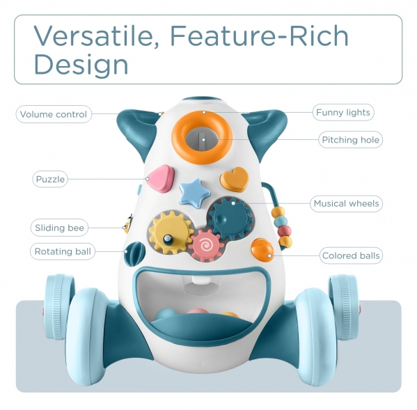 Learn Through Play: The engaging light-up musical panel of baby walker for boy and girls features geometrical shapes, colorful beads, music switch gear, and other activities to encourage babies' fine motor skills, cognition in practice, and hand-eye coordination and stimulate their sense of sight and hearing