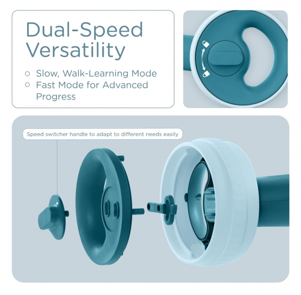 Adjustable Speed: This baby walker with wheels has a two-speed control switch on the rear wheels to grow with the babies' steps, and the rear wheels applied antislip strips increase friction with the ground, avoiding "overspeed" or "out of control"