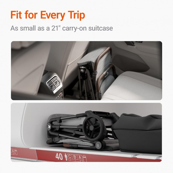 • Compact & Lightweight Design: Say goodbye to bulky strollers that make travel a hassle. Our baby stroller boasts compact design that effortlessly folds down into a compact size. Weighing in at just 11.6 pounds, thanks to its advanced carbon fiber frame, ensuring a hassle-free experience wherever you go. This innovative material not only provides exceptional durability but also allows for an incredibly lightweight construction, making it a breeze to store in trunks or overhead bins on airplanes.