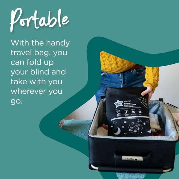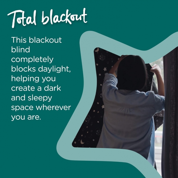 Create a dark sleepy environment for your little one anywhere with the Tommee Tippee Sleeptime Portable Blackout Blind. Through the challenge of changing seasons, lighter nights and mornings, or when travelling to see friends and family, this handy blackout blind helps create a dark and cosy environment to encourage little ones to enjoy a more restful sleep. It is very adaptable and can be put in place in minutes, attaching directly to window glass using long lasting suction cups to ensure a close fit that will block out the light. It’s easy to use and quick to adjust, so your little one can sleep better in the dark snoozy environment created. Made from a lightweight blackout fabric that completely blocks daylight, it is light to carry and comes in a handy travel bag, making it a holiday essential.SET CONTAINS: 1x Regular Blackout Blind