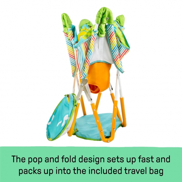 Portable, foldable activity center with removable sun shade. Great for outdoor or indoor use!
